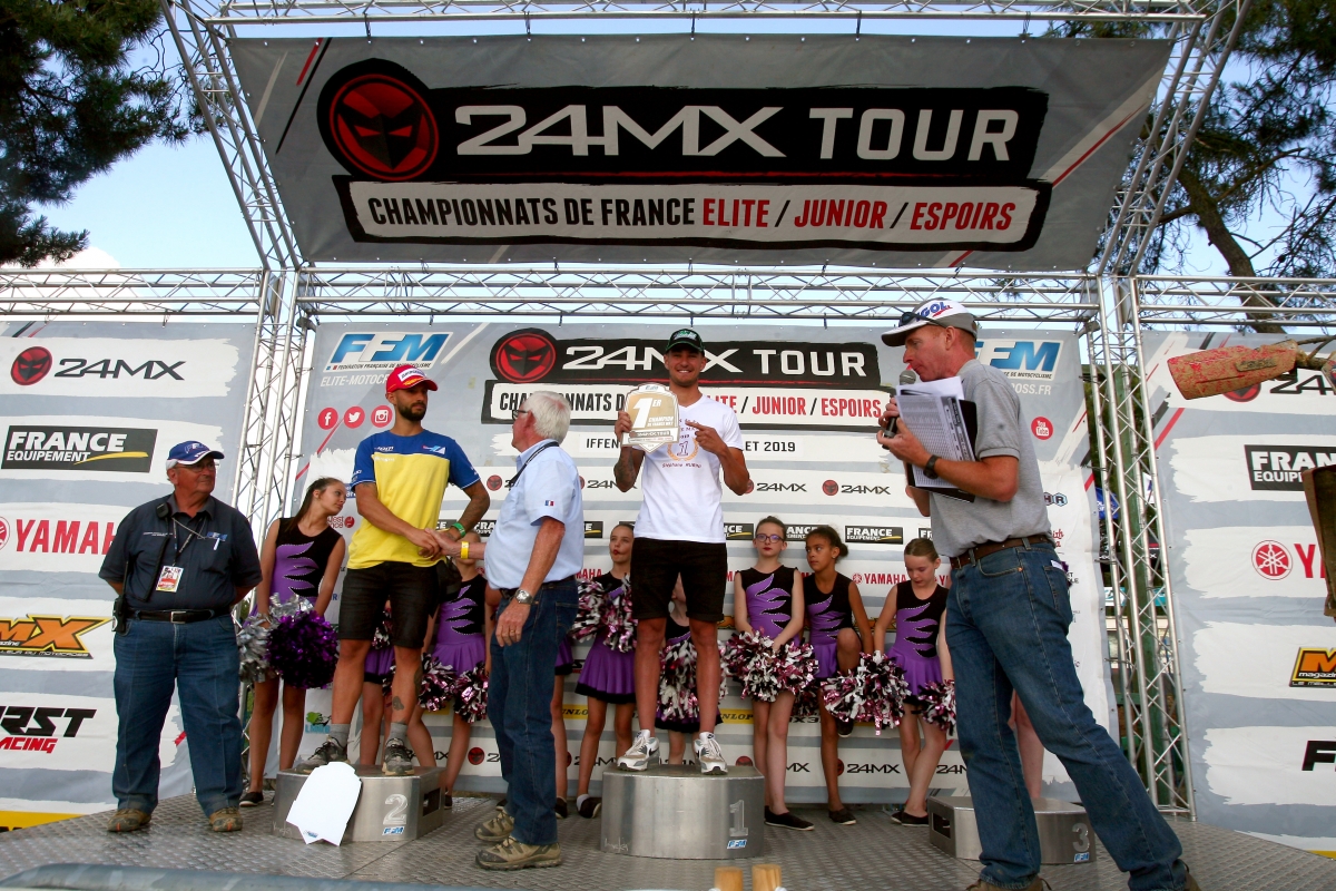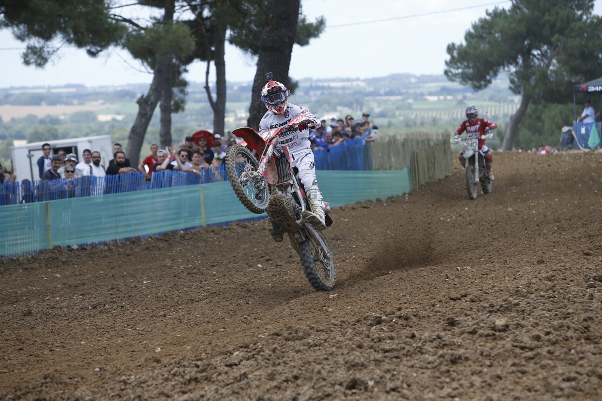 Comme à Rauville la place il y a deux semaines, Jordi Tixier (VHR KTM) n’a pas fait dans la demi mesure en remportant les deux manches avec autorité. Ceci étant, la journée ne fut pas une promenade de santé pour le pilote VHR qui a vécu une première manche mouvementée. Il s’est déjà couché dans un virage après quelques mètres, ce qui l’a contraint à faire le forcing dans les premiers tours pour revenir aux avant-postes alors que les Clochet, Desprey, Guillod et Aubin avaient sorti la grosse attaque. Mais surtout, le Francilien s’est envolé dans le dernier tour de la manche sur une portion rapide en descente. Bien froissé, il a tout de même eu le temps de repartir devant le second, Valentin Guillod (Suttel Honda), mais on a manqué perdre le pilote KTM pour la journée. Heureusement, l’homme est un solide ! Sa seconde manche fut plus limpide puisqu’il « n’eut » qu’à se débarrasser de Maxime Desprey pour triompher.