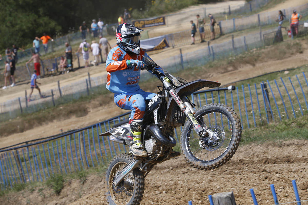 Vainqueur de la qualification du groupe B hier, Bogdan Krajewski (KTM) a enfin confirmé sa vitesse de pointe, lui qui peine à concrétiser son potentiel depuis le début de l’année. Cette fois, ça l’a fait ! Malgré deux mauvais départs qui l’ont repoussé au-delà du top 10 dans les premières boucles, le pilote nordiste est revenu sur le devant des opérations à chaque fois pour signer une troisième et une première place. Un résultat qui lui permet de devancer sur le fil Simon Depoers (Yamaha), impérial en première manche, mais victime d’un départ médiocre dans le second qui ne lui a pas permis de scorer mieux qu’une 4e place. Surtout, Bogdan a profité de l’abandon dans le dernier tour de la seconde manche de Suff Sella qui était parti pour enlever sa première victoire de manche, ainsi qu’au général. Un piston défaillant en a décidé le contraire à quelques mètres de l’arrivée… Pas de chance ! Du coup, c’est Pablo Metayer, de retour en grande forme après quelques pépins physiques, qui grimpe sur le podium après deux manches opiniâtres qui l’ont vu signer une seconde et une troisième place. Sa meilleure performance dans la catégorie
