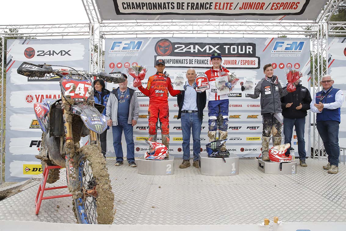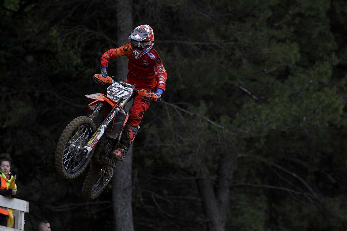 L’objectif principal de sa saison étant le Championnat d’Europe 125cc, Tom Guyon (VRT KTM) a fait le choix de s’aligner à Pernes-les-Fontaines sur une moto de cette cylindrée afin de mieux se préparer. Le pilote de l’Equipe de France monte clairement en puissance au fil des courses et il réussit la performance majuscule de remporter l’épreuve. Il a forgé son succès en première manche en assurant un bon départ qu’il l’a vu se placer en deuxième position derrière Cavin Fonvieille (TMX KTM) après que Valentin Teillet, qui avait signé le holeshot, soit tombé dans le premier tour. Guyon a patiemment mis la pression sur Fonvieille et, lorsque ce dernier s’est montré moins tranchant dans le trafic des retardataires, il a réussi à passer pour filer vers la victoire. Lors de la seconde course, il est à nouveau bien parti, s’est défait de Lucas Imbert (TMX Yamaha) après deux tours et n’a pas été inquiété. Il n’a toutefois pas été en mesure de suivre le rythme imposé par Teillet qui était parti devant après avoir signé un nouveau holeshot. Le pilote JPM Racing Suzuki termine deuxième de la journée et peut nourrir quelques regrets car un doublé lui tendait les bras s’il n’avait pas chuté en première manche pour finir à la troisième place. Il se console en reprenant la tête du Championnat à Pierre Goupillon (Assomotor RedMoto Honda), absent sur blessure.