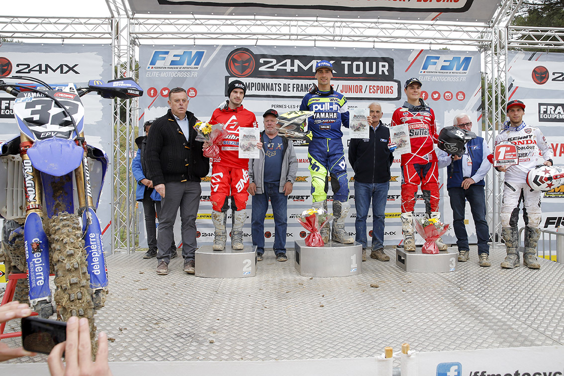 Sans remporter de manche mais grâce à deux bons départs et deux courses très propres terminées à la deuxième place, Milko Potisek (HB Racing Yamaha) remporte sa première épreuve de la saison. Cela faisait bien longtemps que le Nordiste n’avait pas signé un aussi bon résultat sur le 24MX Tour. Très rapidement placé second en première manche, il est resté dans la roue dans la roue de Nicolas Aubin pour terminer trois secondes derrière le leader. Longtemps troisième de l’ultime course après s’être défait de Rémy Annelot (Suzuki), il s’est fait distancer par le duo Valentin Guillod (FR25 Honda) Nicolas Aubin avant que ce dernier, alors en tête, ne cale à cinq tours de l’arrivée et reparte entre lui et Grégory Aranda (SN Motorsports KAwasaki). Le pilote OB1 Motorsports peut nourrir beaucoup de regrets car il était en mesure de s’imposer sans cette erreur. Il avait remporté la première manche en dépassant Dan Houzet dès les premiers virages et avait bien contenu Potisek. Lors du second départ, il avait pris la roue de Guillod avant de lui faire l’intérieur après quelques virages. C’est en fin de manche, alors que le Suisse remettait la pression, qu’Aubin, victime de douleur aux avants-bras, a fait cette erreur qui lui coûte la victoire. Guillod complète le podium de l’épreuve grâce à son holeshot et sa victoire en seconde manche. Parti dans le Top15 au départ précédent, il avait chuté dans le tour 2 pour ne terminer que cinquième.