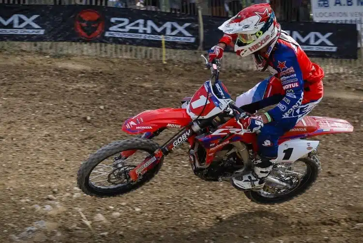 Le retour du 24MX Tour sur un terrain typé sudiste s’annonçait comme une occasion rêvée pour Grégory Aranda de refaire son retard sur le leader du Championnat Xavier Boog (Honda SR Motoblouz). Mais l’Alsacien, qui réussit généralement bien à Pernes-Les-Fontaines, maîtrise à la perfection son pilotage. Il a clairement mené les débats et bénéficie d’un problème mécanique d’Aranda pour prendre 48 points d’avance sur ce dernier au Championnat. Il est désormais sur un boulevard en vue du titre ! Il est bien sorti de grille en première manche, juste derrière Nicolas Aubin. Il est resté dans la roue du pilote Amexio Suzuki pendant cinq tours avant de placer une franche attaque et de passer. Le Normand est resté dans sa roue toute la course mais n’a pu retenter d’attaque. L’ultime course du jour fut du même acabit. Parti troisième derrière Aubin et Aranda, il a disposé du Gardois dans le premier tour mais s’est fait distancer durant les deux premiers tiers de la course, moment auquel il a décidé de monter nettement le rythme. Aubin n’a pu résister, se contentant de la deuxième position de cette manche et du classement final de l’épreuve. Deux holeshots lui ont permis, sur une piste où il y a peu de trajectoires pour doubler, de se placer dans de très bonnes conditions. Il s’empare de la deuxième place du Championnat au détriment d’Aranda. Alors qu’il était troisième au début de la première course et sous la pression de Cédric Soubeyras, le pilote SN Motorsport Kawasaki a été victime d’une casse moteur qui l’a envoyé au sol. Contraint à l’abandon il se classera troisième d’une seconde manche où il n’aura pas réellement été inquiété. Il hypothèque fortement ses chances en vue du Titre.
