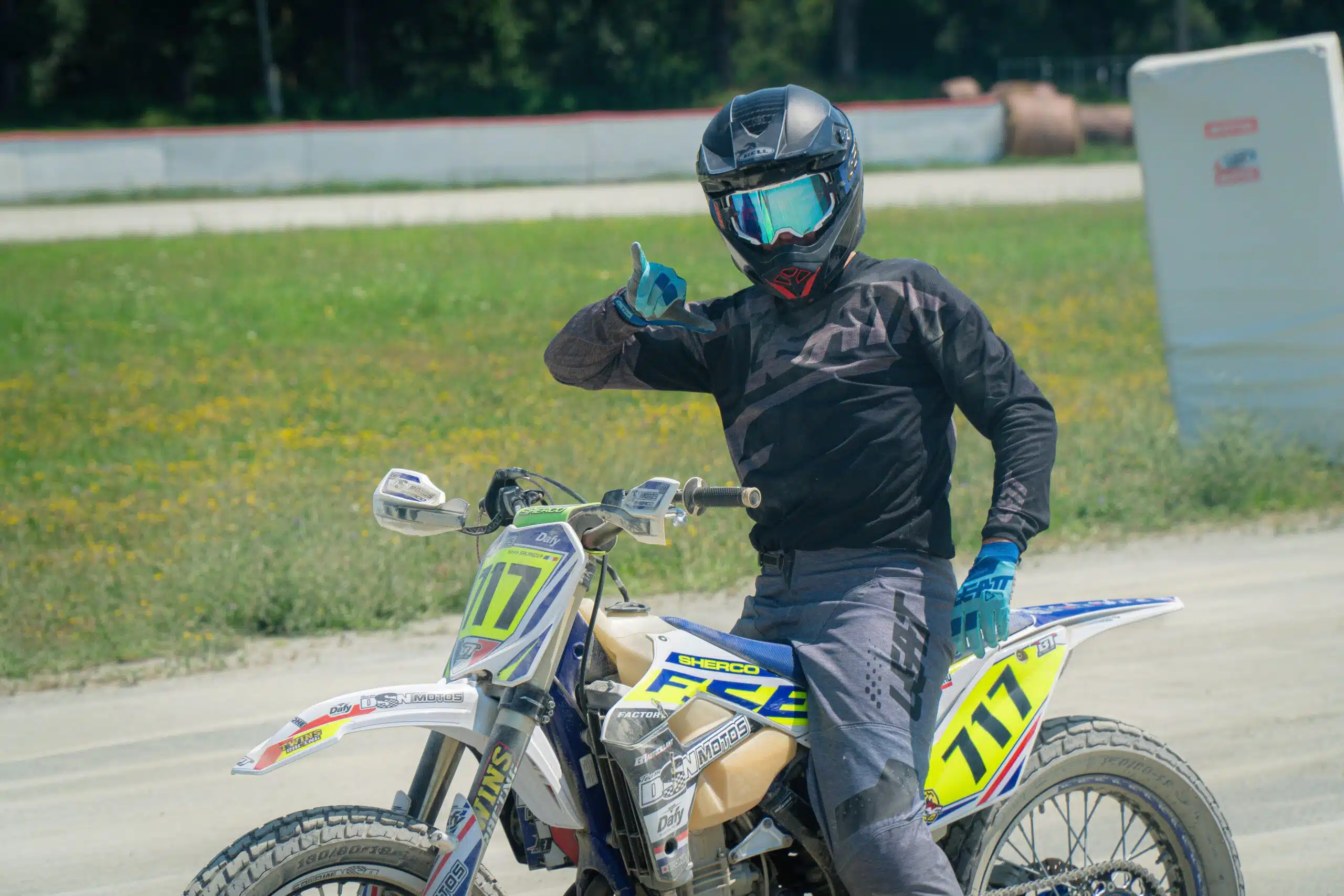En soit les modifications pour passer du Motocross/Enduro au Flat Track ne sont pas énormes et le team nous le confirme. « Un gars qui veut se faire plaisir se prend une moto sur leboncoin, s’achète des roues et peut faire sa prépa lui-même sans apporter un gros budget ». Kévin nous confiera par la suite qu’un amateur peut même faire une saison complète avec un pneu. Impensable dans les autres catégories motos !