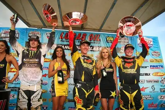 Pour sa première course chez les pros, le jeune Eli Tomac – fils de la légende du VTT John Tomac – a tout simplement réussi à s’imposer face aux meilleurs pilotes de la discipline. Seul James Stewart avait réussi cet exploit avant lui. Troisième de la première manche, après avoir mené la course mais chuté, le pilote Honda Geico remporte la seconde confrontation et s’adjuge la victoire au général devant Christophe Pourcel et son coéquipier Trey Canard.