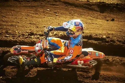 Ryan Dungey remporte donc son septième succès de la saison et compte désormais 85 points d’avance sur Mike Alessi. Avec seulement trois épreuves au calendrier, Ryan devrait logiquement décrocher la couronne 450cc.