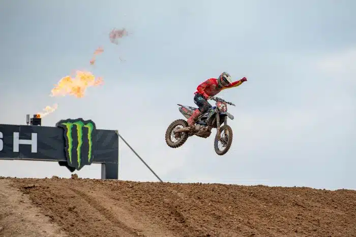 Andrea Bonacorsi connait décidément une sacrée fin de saison. Sacré champion d’Europe EMX250 en Turquie après une année parfaitement maîtrisée, il a terminé dans le top 10 de la finale du championnat du monde MX2 (13/9). Le solide gaillard italien vient de voir sa saison prolongée, puisqu’il va remplacer au pied levé Mattia Guadagni, qui s’est blessé au mollet droit lors de la course MXGP en Angleterre. Le jeune pilote vénitien, vainqueur du Motocross des Nations 2021 avec Antonio Cairoli et Alessandro Lupino, devra rester au repos et ne pourra donc pas participer à l’édition 2023 du Motocross des Nations, prévue à Ernée les 7 et 8 octobre.