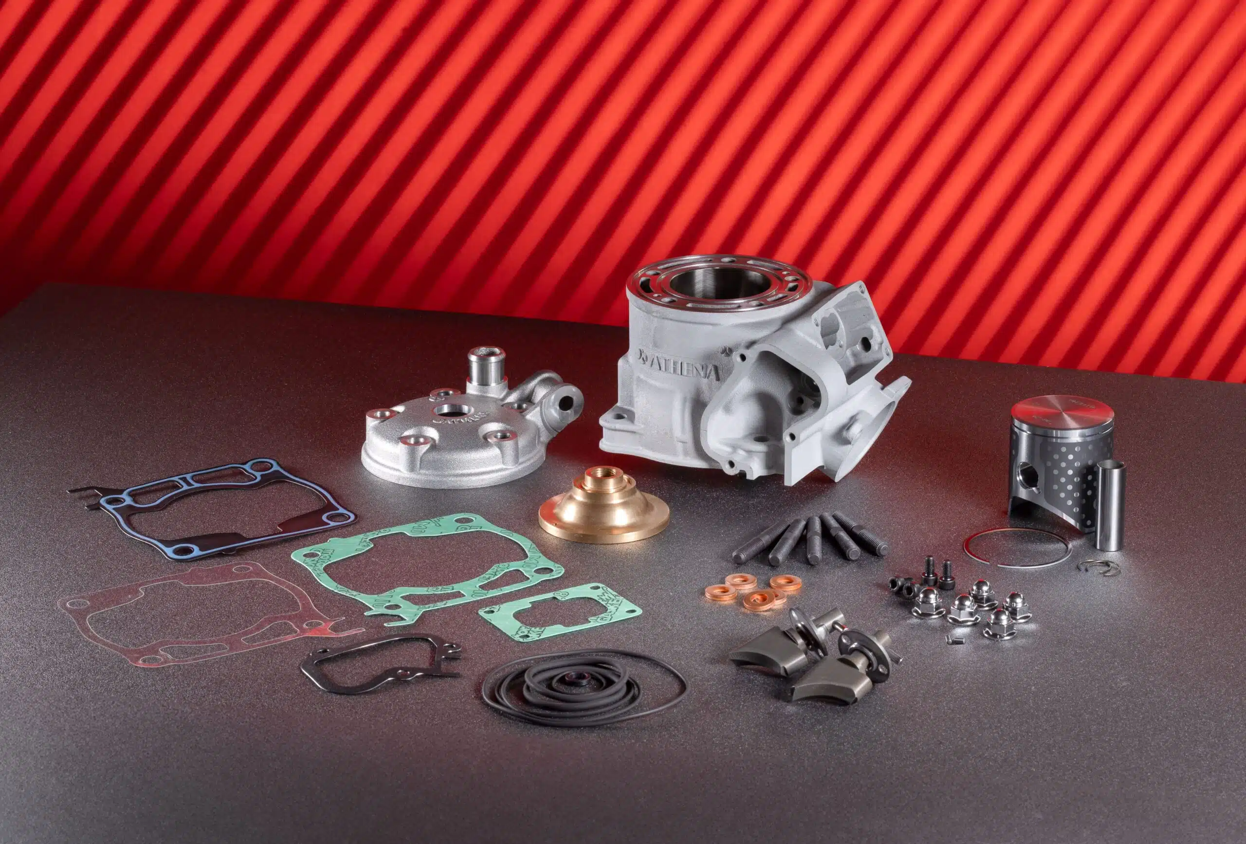Destiné aux pilotes à la recherche de performances accrues sans changer de cylindrée, le kit Racing Athena revoit les transferts d’admission et d’échappement pour plus de réactivité. Le piston à une seule segmentation, la culasse modulaire avec insert bronze, et les valves d’échappement optimisées offrent un gain de performance notable, tout en restant facile à installer.