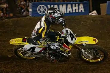 Suzuki’s Travis Pastrana watched the race from the sidelines, nursing a sore leg caused from a run in with Tyler Evans. The former 125cc regional supercross champion started the season with a cast on his hand.