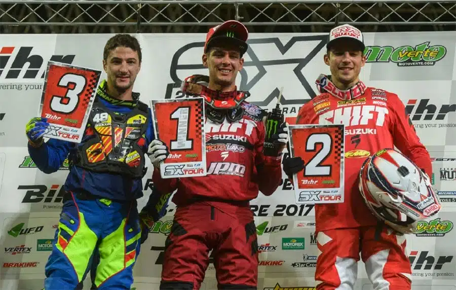 Vendredi et samedi s’est tenue l’ouverture de la saison de supercross Indoor du SX Tour Championnat de France 2017 à Montpellier sur un très beau développé où la sélectivité qu’offrait la piste réalisée par Cédric Lucas dans le magnifique Arena a parfaitement répondu au lancement des hostilités . Les couleurs du team JPM Racing Suzuki ont brillé au plus haut grâce au doublé victorieux de Cédric Soubeyras en SX1 devant Thomas Ramette et de Yannis Irsuti en SX2 face à Thomas Do.