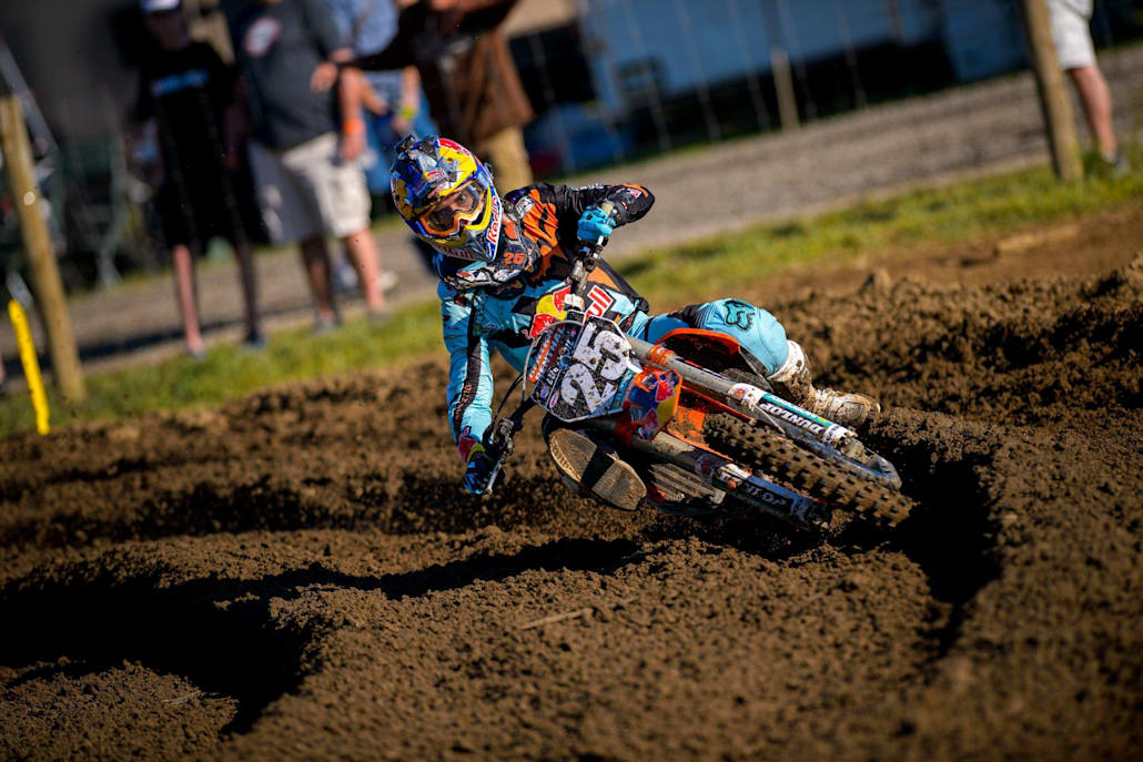 Encore un champion côte est avec une bonne chance en outdoor ! Marvin Musquin est champion du monde MX2, vient de coiffer la couronne SX 250 east, et est donc en parfaite confiance pour détrôner le champion sortant Jeremy Martin (oui, c’est le même qu’aujourd’hui). Les deux vont se rendre coups sur coups, boulettes sur boulettes pour arriver à la finale d’Indiana à égalité de points. Une battle royale qui s’annonce ! Ah non, finalement, on me dit dans l’oreillette que la KTM a cassé dès le début de première manche, offrant ainsi le titre à J-Mart pour 12 points. Ça doit faire cher le point, cette histoire…