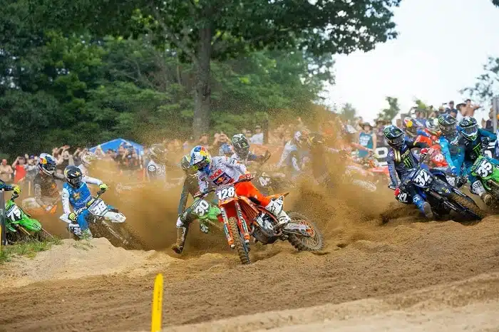 Très franchement, ce championnat des Etats-Unis Outdoor 250 paraissait largement plié après la première manche de RedBud, ultra dominée par un certain Hunter Lawrence. L’aîné de la famille venait de dominer de la tête et des épaules cette manche, après un bon départ. Un privilège d’habitude réservé aux secondes manches, qu’il avait toute remporté jusqu’à là. Comme les épreuves au général, d’ailleurs, puisqu’il était là aussi sur un sans faute. Bref, vous l’avez compris, on était sur une domination sans partage du meilleur pilote de la catégorie, tout simplement. Un fait que même ses adversaires avait plus ou moins intégré, il faut bien le dire.