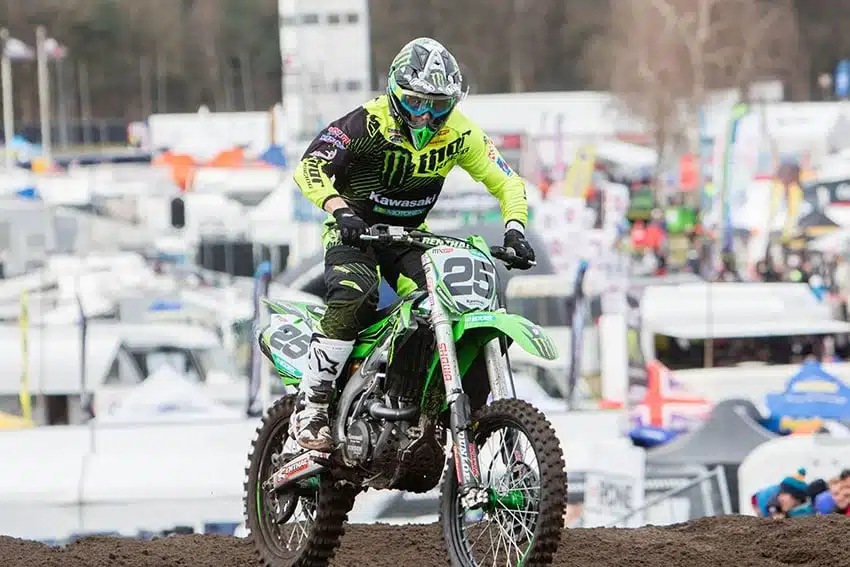 Vainqueur d’au moins un GP 450 chaque saison (sauf l’an passé, fichu en l’air par des blessures à une épaule et à un genou) depuis 2009, Desalle connaît un début de championnat difficile, mais on peut compter sur lui pour redresser la barre… Nombreux sont les observateurs qui pensent qu’on doit s’attendre à d’excellentes performances de la part du Belge aux commandes de la Kawasaki. Par ailleurs Clément et sa girlfriend Andrea attendent leur premier enfant, une fille qui se prénommera Emma, dans les semaines à venir. Un heureux événement, un retour aux avant-postes en compétition, que demander de plus ? « Je ne pense pas qu’on puisse faire pire que ce que j’ai montré lors des trois premiers GP, donc ça va forcément s’améliorer. Et puis, bien sûr, je suis très excité à l’idée de faire la connaissance de ma fille ! ».