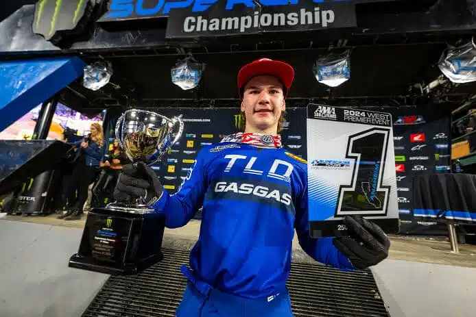 Repéré en fin d »année dernière quand il était sur la Yamaha CDR de Josh Coppins par Wil Hahn, le coach du team TLD GASGAS, ce dernier a convaincu Daniel Blair, qui dirige le programme amateur du groupe KTM, de tenter quelque chose avec le kid. Bien lui en a pris. Will et le team pourraient bien être tombé sur une sorte de pépite pas encore polie, car réaliser une telle course devant un tel environnement avec si peu d’expérience, ce n’est pas donné à tout le monde. De quoi rappeler les débuts en Europe d’un certain Ben Townley… La famille a signé un contrat pour cinq courses, histoire de voir si le jeune est fait ou non pour le SX US. J’ai comme dans l’idée qu’il pourrait bien être prolongé.