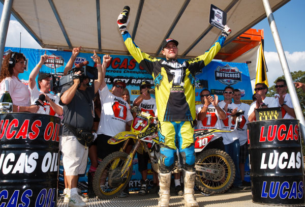 Bref, de son propre aveu, Jason sent qu’il doit monter en puissance en 2008, après s’être fait corrigé par Villo toute la saison. YOT sort la carte bleue pour que le jeune prenne un entraîneur. Ce sera Ryan Hugues… Ryno travaille notamment sur le mental avec son nouveau poulain. La côte ouest ne manque pas de talent cette année-là, avec comme favoris Justin Brayton, Austin Stroupe, Broc Hepler, Jake Weimer, Brett Metcalfe et.. Ryan Dungey, qui remporte d’ailleurs l’ouverture, devant Jason Lawrence. Une seconde place pour Dungey avant une nouvelle victoire mettent le pilote Suz sur orbite, d’autant que les autres favoris ne parviennent pas à rester constants. Du coup, Dungey dispose vite d’un beau petit tapis de points d’avance après trois rounds seulement. Quant à Lawrence, il est déjà à 34 points ! Mais le pilote Yamaha et son gourou Ryno ne baissent pas les bras. La stratégie ? Faire péter les plombs au gendre idéal. J-Law lui pourrit tous ses temps chronos en partant juste devant ou derrière lui, essaye de le sortir à chaque essais, hurle et tape sur la cabane de celui qui tire la grille quand Ryan est de l’autre côté… Il n’hésite pas à se moquer ouvertement de son rival en interview. Un sale gosse, un vrai, qui, selon la rumeur, prend même des départs de SX totalement défoncé à la ganja. Dès le quatrième round, J-Law gagne dans la boue de San Francisco, avant d’enchaîner deux autres victoires à Anaheim 3 et San Diego. Pendant que Dungey, lui, coule petit à petit, enchaînant mauvais départs et chutes à répétition pour remonter. Au soir de San Diego, lui qui avait le championnat fermement en main est maintenant relégué derrière Lawrence, qui accentue encore son avance avec une seconde place à Houston derrière Stroupe, Dungey terminant quatrième. Et finalement, même si Dungey se reprend en remportant la bataille finale à Seattle, c’est bien Jason Lawrence qui va gagner la guerre en remportant son seul titre en pro.