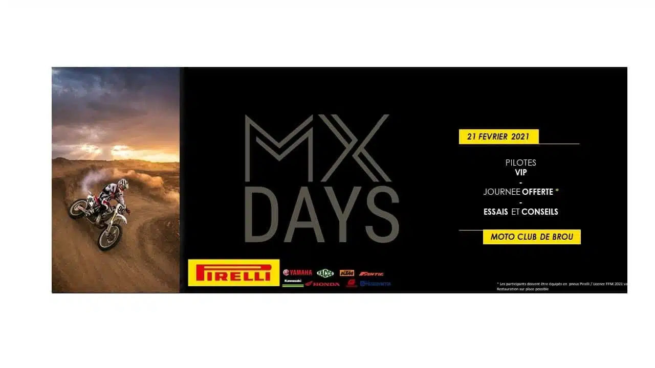 La journée Pirelli MX Days aura lieu cette année le dimanche 21 février 2021 au Moto Club de Brou pour une 2ème édition.