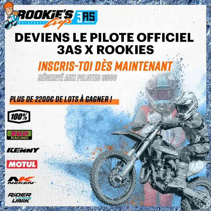 La firme spécialiste de l’équipement moto 3AS Racing et la célèbre course Rookie’s Cup, dont il s’agit du partenaire titre, se sont associés pour proposer aux jeunes pilotes en 85 cm3 de remporter un contrat pilote pour la saison 2023/24, avec plus de 2200 € de dotations produits à gagner. Les modalités d’inscription pour tenter de décrocher ce contrat pilote sont les suivantes :