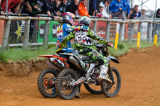Dylan Ferrandis : Non, j’essaye de profiter de la manche MX1 parce qu’en tant que pilote j’adore regarder les courses, j’ai mes pilotes préférés, j’ai envie de voir de l’action et voir les français devant. Voilà c’est tout. Après cette manche MX1, depuis que cette année il y a la clinique mobile, j’aime bien aller y prendre un bain froid, je crois que j’étais le seul pilote d’ailleurs parce qu’il faisait quand même assez froid aujourd’hui… Je crois que ça m’a aidé, sinon je ne fais rien de spécial même si ce week-end il y a eu beaucoup d’émotion après cette première manche, tous mes potes et ma famille étaient là pour me féliciter. J’essaye de garder la tête froide, de ne pas me dire en deuxième manche il faut que tu gagnes et te dire plutôt, vise le top 5.