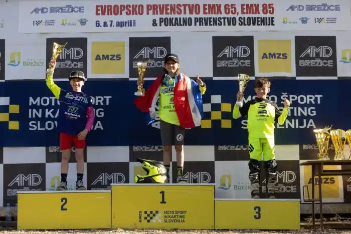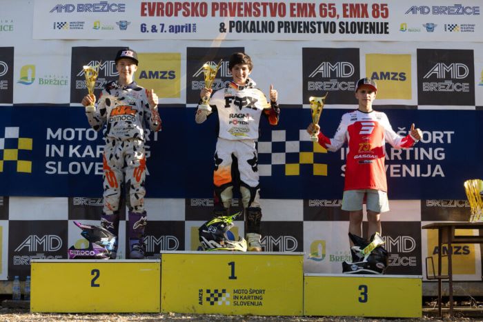 Du podium aussi en EMX65, avec la victoire en première manche et la deuxième place dans la seconde pour Timotei Cez, qui finit ainsi deuxième du général derrière le Croate Roko Ivandic. Mathys Agullo, 7/3, termine troisième du général. D’autres Français étaient présents, comme Timeo Desbordes (6/6, 8e du général) ou encore Conrad Pinchon (14/15, 14e du général) et Liam Morette (9/22, 17e du général).