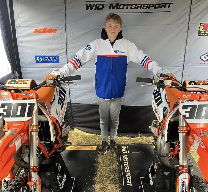 En EMX85, Liam Bruneau, après avoir manqué le podium de justesse en Slovénie, a cette fois fait claquer une Marseillaise ! Deuxièùme de la première manche derrière l’Espagnol Juan Izzaguirre, il a récidivé dans la deuxième derrière Ricardo Pini, l’actuel leader du championnat. Liam occupe également la deuxième place du classement provisoire.