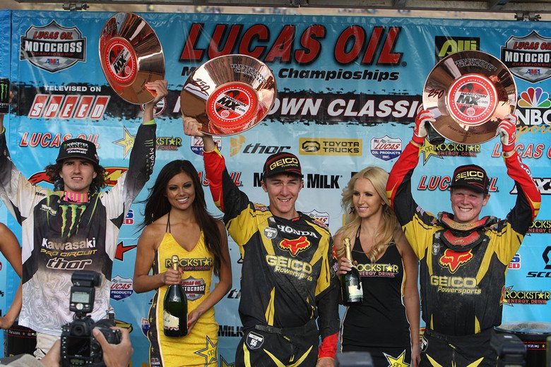 Du coup, on ne peut que féliciter encore plus le team et ses pilotes pour cette dernière de la saison, avec notamment la seconde manche 250 où les Geico Boyz Jett Lawrence, Jeremy Martin et Jo Shimoda se sont placés un, deux et trois, le jeune Carson Mumford huitième pendant qu’en 450, Chase Sexton et Christian Craig, encore parties intégrantes du team pas plus tard que pour le SX, montait sur les deux premières marches du podium de la manche. En matière de « reclassement professionnel », on parle déjà de Jeremy Martin chez PC Kawasaki, ça devrait se faire. Les frères Lawrence devraient quant à eux rester sous l’aile Honda, sûrement sous la tente officielle du HRC. Mumford et Shimoda cherchent du travail, qu’ils pourraient trouver, encore une fois grâce à l’aide de Honda, chez Phoenix Racing Honda qui faisait rouler Kyle Peters, Luke Neese et Jace Owen cette saison. À suivre.