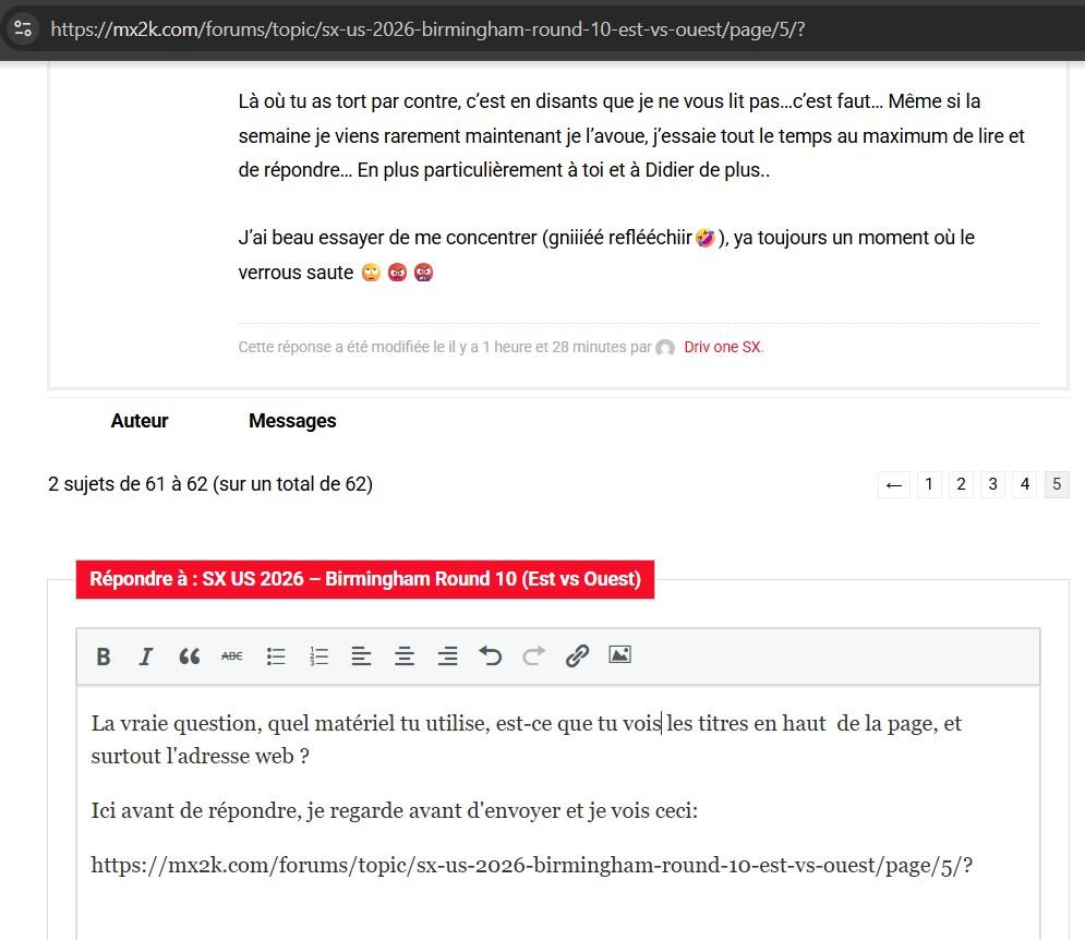 26 mars 2026 à 5h16 #1791372La vraie question, quel matériel tu utilise, est-ce que tu vois les titres en haut de la page, et surtout l’adresse web ?