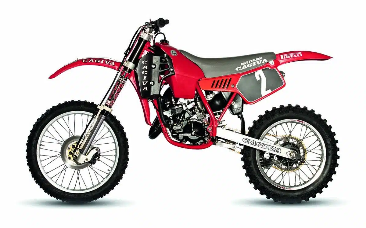 Héritière d’une dynastie née en 1979, cette Cagiva WMX 125 d’usine, vouée à la destruction mais sauvée par son mécanicien de l’époque Massimo Castelli, aujourd’hui responsable technique au HRC en MXGP, a été championne du monde en 1986. Le dernier titre pour Cagiva en MX, et aussi le premier et le dernier pour son pilote Dave Strijbos, à l’époque plus jeune champion du monde de l’histoire.