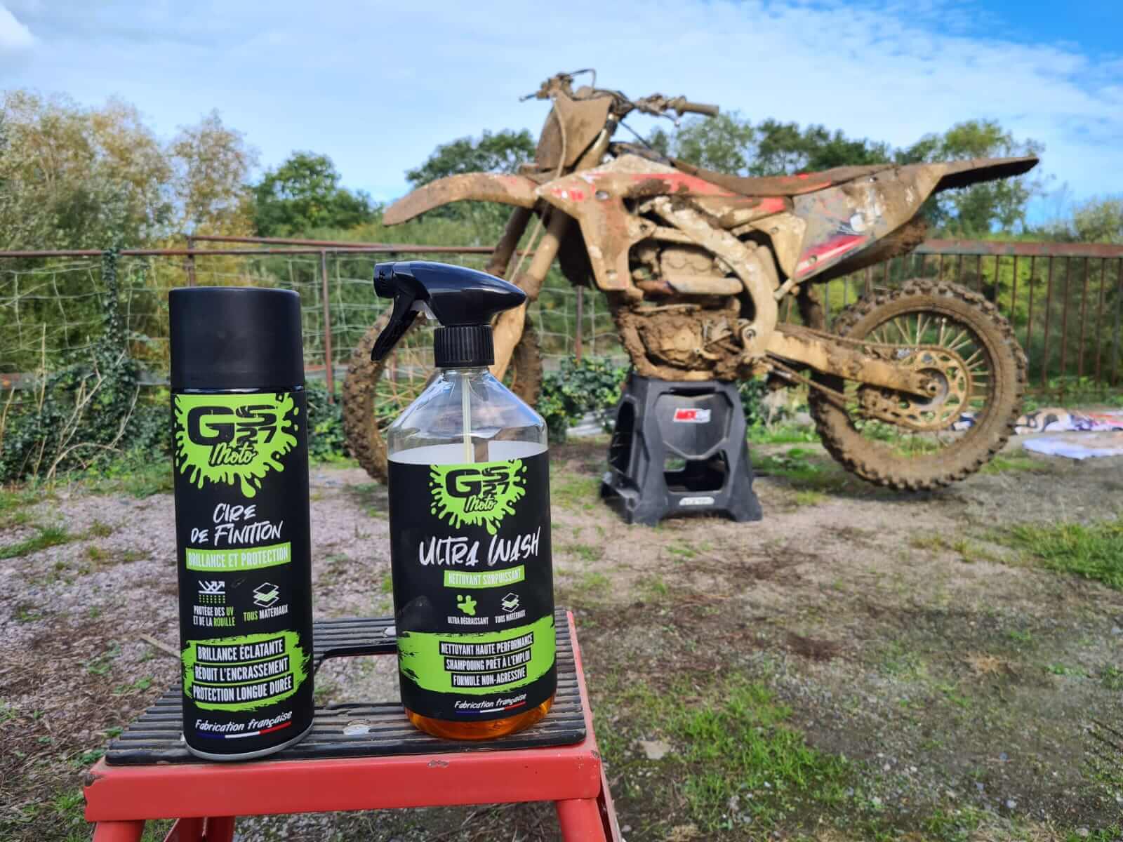 GS27 Ultra Wash se distingue par sa promesse d’un nettoyage efficace et d’une protection durable pour vos surfaces. Nous allons passer en revue ses caractéristiques, ses avantages, et nos impressions après l’avoir testé sur la Fantic XXF 250 de la rédaction après une sortie plutôt humide.