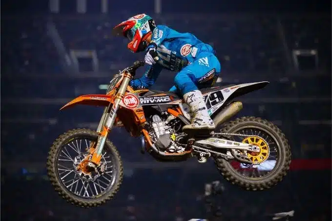 On ne reverra pas Chris Blose tout de suite, par contre. Le vétéran, qui faisait une très bonne entame de championnat avec des qualifications en finale à chaque fois, était destiné au championnat 250 côte est avec de bonnes chances de top 5. Hélas, il ne sr’est pas relevé après une énorme chute dans les whoops. Une hémorragie interne, vite stoppée, a fait craindre le pire mais finalement, Blose s’en tire avec un bras cassé (qui nécessite une opération), le reste devant guérir tout seul.