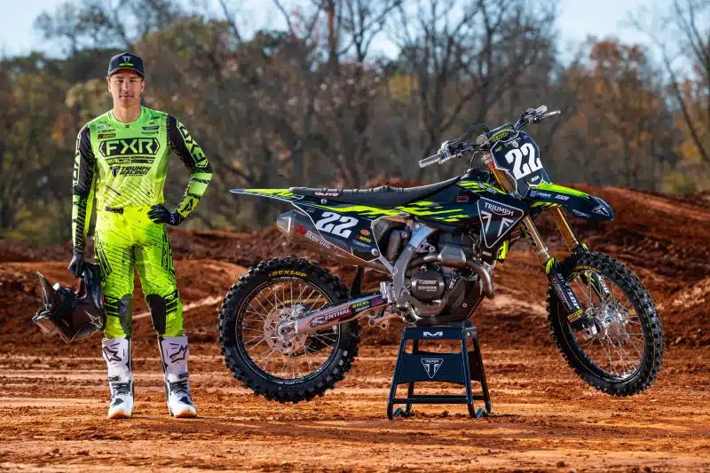D’après le communiqué de presse, les premières évaluations médicales indiquent une « blessure au tendon ». Une analyse approfondie est en cours pour confirmer le diagnostic et déterminer la durée de son absence, mais selon plusieurs sources US, on est sur une suspicion de rupture du tendon d’Achille. Autant dire que si ça se vérifie, cette blessure pourrait compromettre la participation du jeune homme au championnat 250 SX est, et même à la saison complète… On croise les doigts pour lui. En conséquence, Austin Forkner, initialement prévu sur la côte ouest pour un intéressant duel avec Haiden Deegan, a été contraint de basculer vers la côte est. Stilez Robertson, nouvelle recrue en provenance de Star Racing Yamaha, blessé depuis fin 2023, fera ses débuts pour Triumph sur la côte ouest aux côtés du vétéran Jordon Smith, qui fait désormais figure de capitaine du navire Triumph !