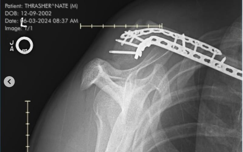 Mais pourquoi annonce-t-il qu’il roulait à 60 % de son potentiel ? Nate Thrasher a fourni plus d’informations lui-même sur son compte Instagram, en révélant qu’il avait subi une grosse chute avant le deuxième round d’Hangtown et qu’il avait roulé diminué. Et effectivement, une radiographie réalisée lundi matin a montré qu’il souffrait d’une fracture de la clavicule, et qu’en plus il avait plié une plaque qui se trouvait déjà sur l’os ! Terminer deux manches dans les points d’une course pro dans ces conditions, chapeau l’artiste ! Après deux courses, Nate Thrasher occupait la neuvième place du classement avec 46 points. Il n’y a pas encore de date prévue pour son retour à la course.