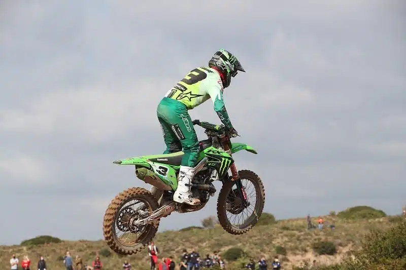 Chez les MX1, c’est évidemment Jorge Prado qui s’est offert son premier holeshot de la saison ! Romain Febvre est resté un moment au contact avant de caler. Puis de lâcher petit à petit à cause d’un mal de bras tenace. Glenn Coldenhoff, pour ses débuts en bleu, prend une bonne seconde place devant le rookie Thomas Kjer Olsen, à l’aise sur le 450 HVA. Et Jeremy Van Horebeek pour ses débuts avec Beta. Son coéquipier Jimmy Clochet termine 13e de la manche.