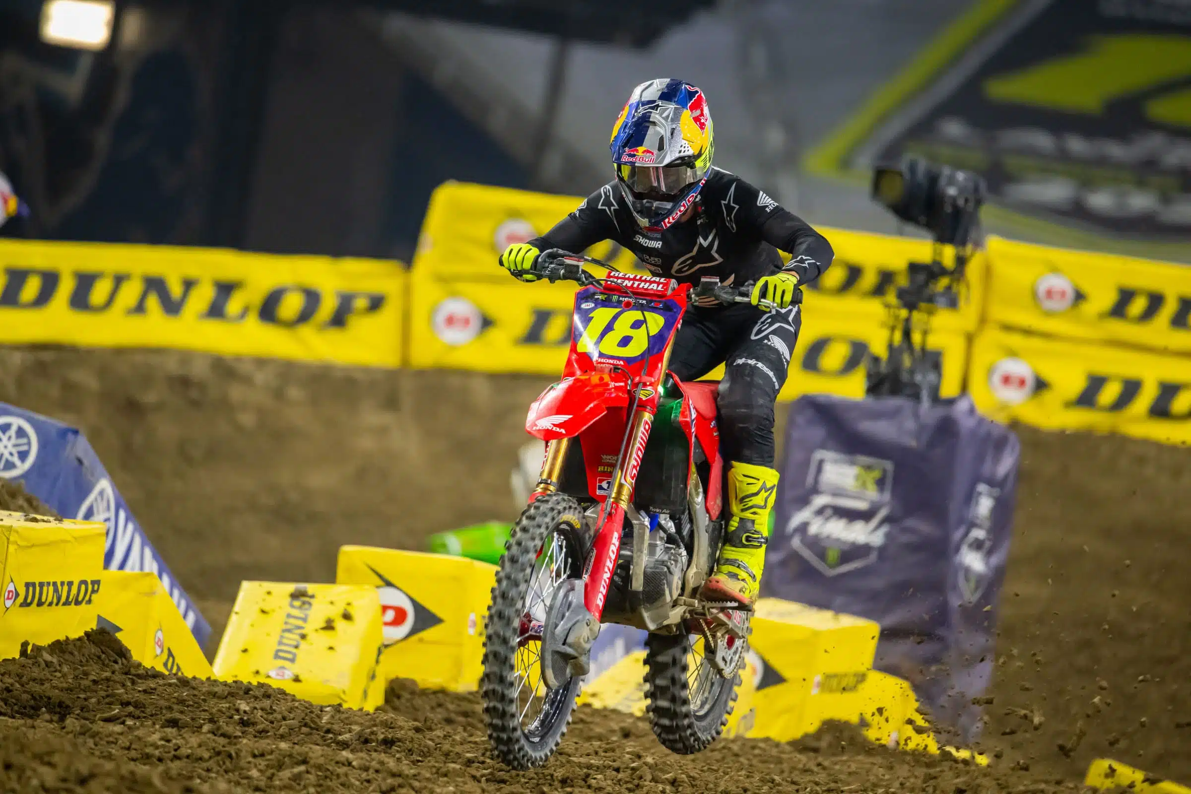 Jett Lawrence : Oui bien sûr. Le plateau est très fort cette année. Tout le monde est assez proche en vitesse. Donc, je pense que la chose la plus importante pour moi est simplement de rester constant, avec des départs constants, être toujours devant. C’est une longue saison de supercross. Alors oui, j’espère que ça changera un peu de côté et que je commencerai à avoir un peu de groove et de rythme. On verra bien. Nous roulons sur des conditions de piste tellement différentes, ici avec des ornières très molles, un rythme plus lent et technique, puis nous allons aller en Arizona où ça va être dur et sec et ça va aller à Mach 10. Cela va donc être une courbe d’apprentissage passionnante. Mais je pense que le plus important est d’essayer de rester constant.