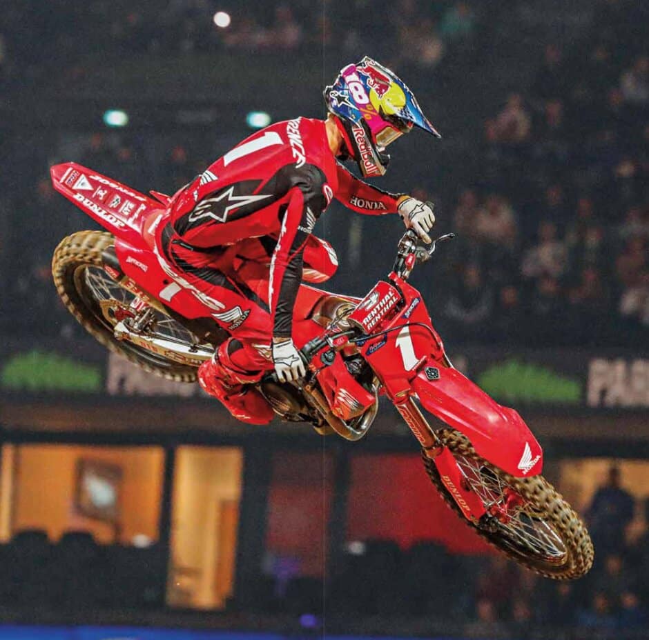 A 21 ans, Jett Lawrence a déjà remporté tous les championnats américains qui comptent, souvent avec la manière. Il vient d’ajouter à son insolente collection de médailles le prestigieux Trophée Chamberlain du Motocross des Nations, un honneur qu’il a partagé avec son frère et Kyle Webster. A l’aube de sa deuxième saison seulement en SX US dans la catégorie reine, il est vu comme le grandissime favori à sa propre succession. Où s’arrêtera-t-il ? C’est bien là la question !