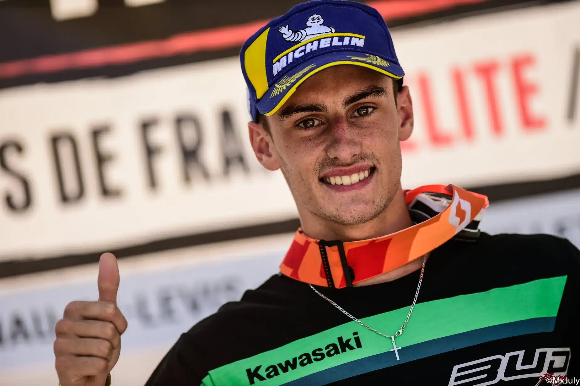 » Après ma blessure j’étais à la limite d’arrêter la moto, ras le bol. C’était une blessure qui n’était pas de mon fait puisque l’amortisseur a cassé et j’étais dégoûté. Mais Bud Racing m’a recontacté et je me suis dit que c’était ma dernière chance. Je me devais d’essayer à nouveau. Je repars donc pour une saison d’Elite, d’Europe 250 avec quelques GP au passage dans l’idée, en 2021, si j’ai été bon, que Bud me reprenne pour le Mondial MX2. J’ai 20 ans donc il me reste encore un espoir d’y arriver. J’ai trois ans devant moi. Ona vu en tout cas que l’Europe 250 restait ce championnat de qualité qui forme pour le Mondial. Toutes les places sont archi disputées et tu ne peux jamais rien lâcher. Y’a toujours un gars dans ta roue alors qu’il me semble qu’en MX2, ça roule par grappe. L’éclosion de Van de Moosdijck est étonnante, mais sans l’être. Nous nous battions ensemble en début de saison et une fois qu’il a pris confiance, sans se poser de question, alors il a explosé. Il faudra le suivre l’an prochain en Mondial à mon avis…
