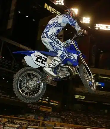 « When I first got out I saw Chad was in front and I wanted to attack early and get up there and I did, » said Windham, « I didn’t get a chance to see him or race with him earlier because he had that problem in the heat. I was surprised how easy I could run with him and wanted to continue to put the pressure on him. He took a few different lines and flipped the coin. When he got back by I definitely didn’t think the race was over and for whatever reason I lost my drive and decided to back out of that one triple and that was it. If you can’t do the triple every lap, your not gonna win. I was definately frustrated but it was better than casing it which probably would have taken me out for the night. » Windham has emerged as Reed’s closest rival in recent weeks, which is good news for supercross with Ricky Carmichael out with an injured knee. « Sitting here today I am confident and see that it’s gonna be a race for the rest of the season, » said Windham, « I don’t think about Chad in front of me or behind me or any of the guys. In reality he is going to be there. Hopefully reality set in him that I am going to be there too. With that said we just gotta focus on putting on a good show because that’s what we are doing. »