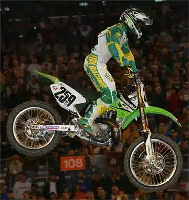 En route to winning his first 250cc main event, Stewart earned the $1,500 Butterfinger Crisp Holeshot Award with Yamaha’s Chad Reed, of Murrieta, Calif., and Suzuki’s Ricky Carmichael, of Havana, Fla., in tow. On Lap 3 Carmichael and Reed passed one another with Reed holding the number two position. On the last lap Reed crashed, allowing Carmichael to move into second place. Stewart led all 20 laps of the main event while Carmichael finished second and Reed third. Carmichael has a 31-point lead in THQ AMA Supercross Series points.