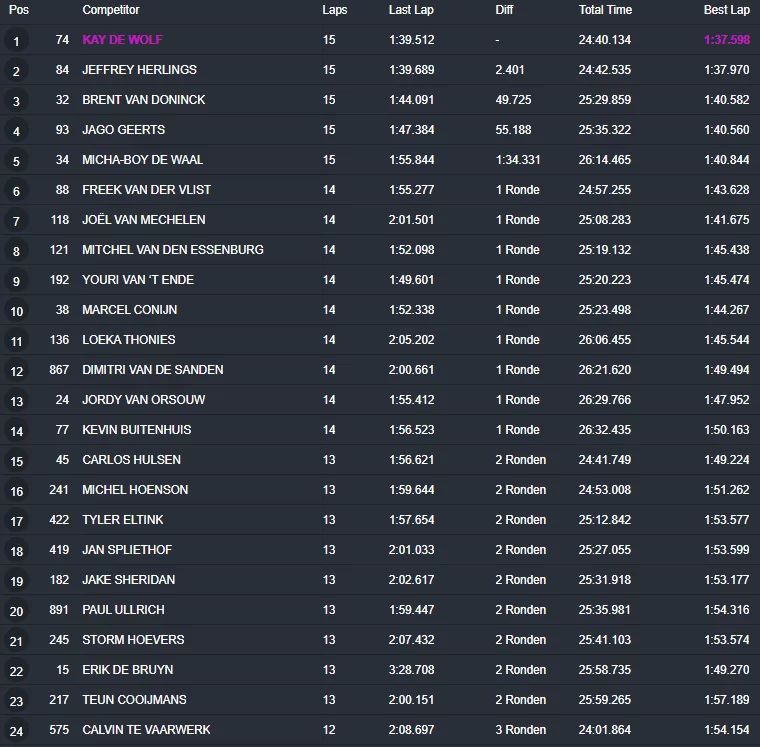 Après ce week-end de championnat de Hollande, on peut dire en tout cas que Kay de Wolf ne devrait pas manquer de vitesse en MXGP. Mieux parti que Jeffrey Herlings en première manche, il a battu The Bullet, en réalisant le meilleur tout en course. Les deux leaders ont littéralement oublié le reste du pack, avec le troisième Brent Van Doninck à presque 50 secondes, et trois secondes moins vite dans son meilleur temps.