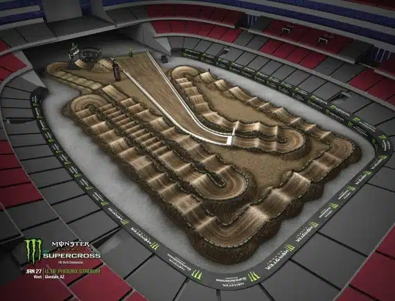 La piste de Glendale, au nord ouest de Phoenix en Arizona, qui accueillera la 4e épreuve du championnat américain de SX samedi soir devrait être encore une fois la plus rapide du championnat. Enfin si l’on se fie à la taille du stade et à la longueur de la ligne droite de départ. Les gros coeurs apprécieront. Les autres, pas trop !