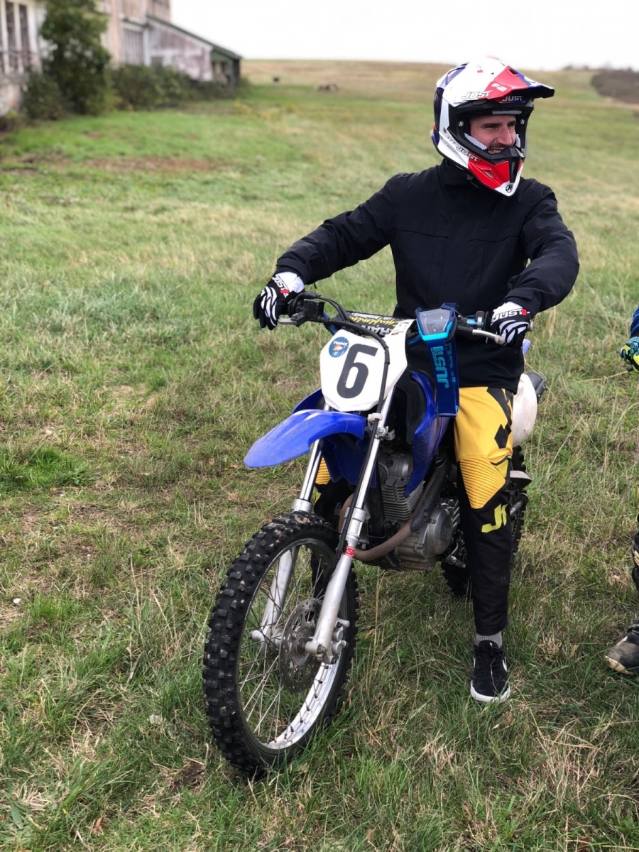 De retour à la maison depuis quelques mois, le Champion du Monde et double champion des Etats-Unis Christophe Pourcel a décidé de ne pas se tourner les pouces, sans doute un peu motivé par l’envie de ne pas passer ses journées dans le canapé à mater des matches de l’OM. Il s’est inscrit auprès des sessions de formation de la Fédération Française de Moto pour passer le Certificat de Qualification Professionnelle initiateur en motocyclisme. Voilà pourquoi on le voit ici chevaucher une Yamaha 125 TTR de l’Ecole Pascal Finot Formation à Saint-Ferréol. Un cursus de 7 semaines qui lui permettra d’encadrer un groupe de jeunes, ou moins jeunes, souhaitant aborder les bases du pilotage moto. Enchaînera-t-il par le diplôme d’état de la Jeunesse, de l’Education Populaire et du Sport (DEJEPS), un diplôme qui lui permettra de professer le haut niveau, là où il a brillé, là est la question… Car on sait que cet examen est à la fois plus coûteux, pénible et exigeant. En tout cas, si jamais vous souhaitez placer votre rejeton entre deux bonnes mains, il est probable que très prochainement, un prof des plus doués sur une moto soit à votre disposition !