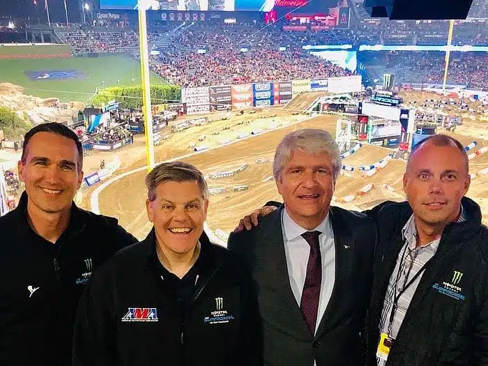 Jorge Viegas, le président de la FIM, a fait le déplacement à l’ouverture du championnat américain (et du monde, il ne faut pas l’oublier !) de supercross pour rencontrer son homologue de la fédération américaine, Rob Dingman, David Prater et Todd Jendro de chez Feld, le promoteur du championnat. L’objectif, parler des procédés des contrôles anti-dopages qui ont fait du bruit ces dernières années, entre les cas James Stewart, Cade Clason, Broc Tickle ou tout récemment Christian Craig. On ne sait pas concrêtement ce qu’il en est ressorti, mais la communication officielle de la FIM semble indiquer que les choses vont dans le bon sens. A suivre…