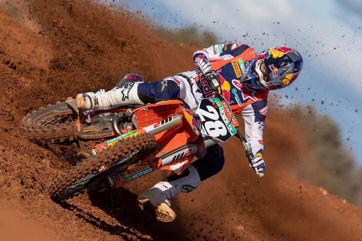 S’il manquait le champion du Monde MXGP en titre, Jeffrey Herlings, lors de la traditionnelle séance photo du début de saison pour cause de pied dans le plâtre, ses copains de la maison orange engagés en Mondial MX2 et MXGP pour faire briller les couleurs maison n’ont pas hésité à se remplir le slip de sable pour faire plaisir au photographe. On vous sert quelques clichés offerts par KTM pour se faire plaisir aux rétines. C’est propre !