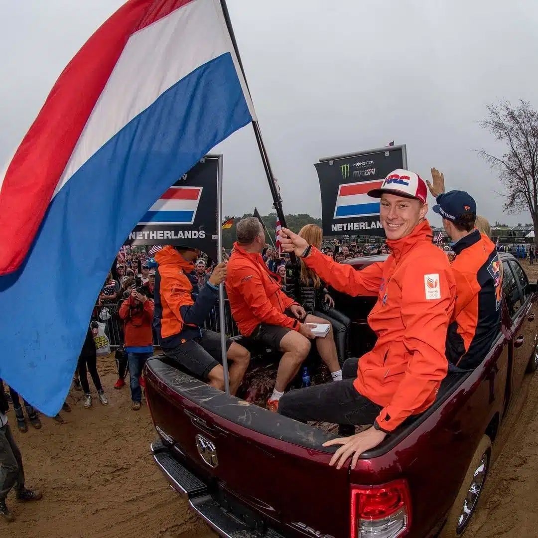 Une bonne nouvelle pour commencer la journée. Le malheureux Calvin Vlandereen qui, on s’en rappelle comme si c’était hier, a dû se retirer de la première manche du Motocross des Nations opposant les pilotes MXGP à ceux du MX2 va relativement bien, dixit son team-manager Giacomo Gariboldi. Le Hollandais qui s’est pris une pierre dans l’oeil à la mi manche, au 8e tour, alors qu’il devançait Cody Cooper à la 12e place souffre toujours d’un hématome à l’oeil, mais c’est provisoire. Cela n’affectera pas sa vision à long terme. Le médecin lui a prescrit une bonne semaine de repos afin que la poche de sang se résorbe et basta. Aucune intervention chirurgicale n’est requise. Ouf, sa mésaventure n’aura eu que pour effet de déloger les Hollandais de la première place qui leur était promise… Signalons pour le coup que ce sont les médecins qui lui ont interdit de repartir. Lui aurait bien aimé ! Il a également annoncé sur sa page FB que l’année prochaine, il partira avec l’équipe nationale hollandaise pour l’or à Assen. On est prévenus !