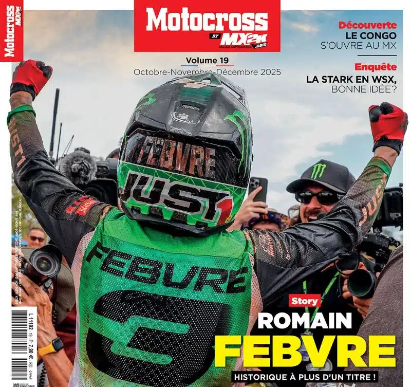 Voilà, le Motocross by MX2K #19 est prêt à envahir les kiosques de France et de Navarre. Dans ce numéro, on revient évidemment largement sur le titre de Romain Febvre, mais aussi sur les dix dernières années précédentes depuis son premier. On a aussi longuement discuté avec un pilote discret mais très rapide, le chasseur de primes Adrien Malaval, tout comme avec son team manager cette saison, Thibault Mugnier, le boss de TMX Compétition. Un manager qui ne fait pas les choses comme tout le monde, et il s’en explique !
