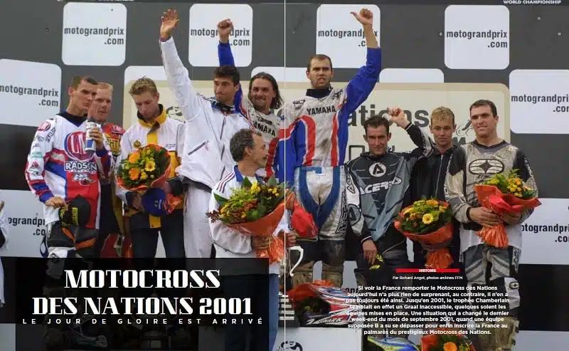 Motocross by MX2K, #4 ! Ce qui veut dire que notre magazine papier va souffler sa première bougie, vu que c’est un trimestriel.. Et c’est aussi en partie grâce à vous, chers lecteurs. Merci pour ça, déjà. On s’est dit que c’était quand même un peu tôt pour réaliser un numéro anniversaire, mais on en a pourtant mis un dedans : les 20 ans de la première victoire de la France au Motocross des Nations, sur le circuit mythique de Namur. Notre gars Rich’ a sorti son enregistreur pour faire ressurgir les souvenirs de l’époque de l’équipe gagnante Luigi Séguy/David Vuillemin/Yves Demaria et le coach Olivier Robert. Ce qui donne un gros papier souvenir aussi riche que passionnant, selon nous, qui relève même du devoir de mémoire ! Car si on gagne maintenant les Nations comme on va acheter le pain, ce n’était pas le cas avant, les jeunes !