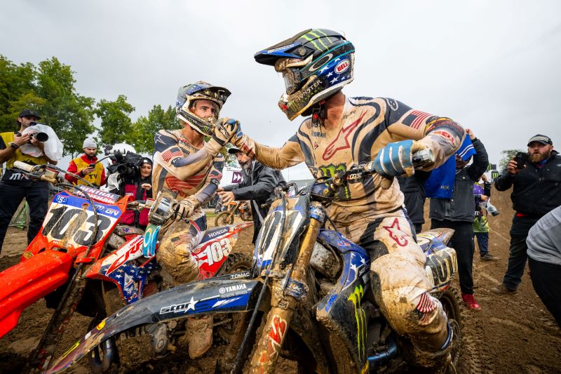 Ce qui, soit en dit en passant, n’était pas gagné, puisqu’on sait maintenant avec quasi certitude que Chase Sexton comme Eli Tomac vont changer de crèmerie à l’intersaison, Eli prenant la place de Chase chez KTM, tandis que ce dernier va rejoindre l’ancien team d’Eli chez Kawasaki US, aux côtés de Jorge Prado, signé à long terme. Le plus souvent, un changement de team pour des pilotes de ce calibre implique de faire l’impasse sur le Motocross des Nations. Pas cette fois, visiblement, les deux concernés ayant la volonté de se battre pour le drapeau à domicile. A domicile, c’est d’ailleurs sans doute le mot clé. On les imagine mal prendre la même décision si la course avait lieu en Europe… Ce MXdN sera donc leur dernière course pour leur employeur actuel, avant de commencer le testing pour le SX dans la foulée.