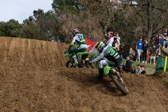 Chez les MX2, Liam Everts, en tête de bout en bout, remporte facilement la première manche devant Thibault Benistant, Mikkel Haarup sur sa Triumph, un excellent Mathys Boisramé et Quentin Prugnières. De nouveau bien parti en deuxième manche, Liam Everts menait avant de chuter, ouvrant ainsi la porte au succès de Thibault Bénistant, devant Haarup. Everts termine sur le podium devant un super Mathys Boisramé, bien revenu d’un départ moyen, et Andrea Bonacorsi.