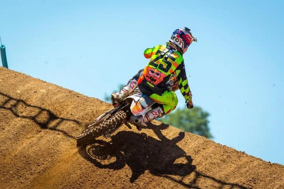 Après son premier succès de la saison en motocross le week-end dernier, Marvin Musquin score une nouvelle victoire ce samedi à Red Bud. Mieux encore, le français profite des déboires d’Eli Tomac pour prendre le commandement du championnat !