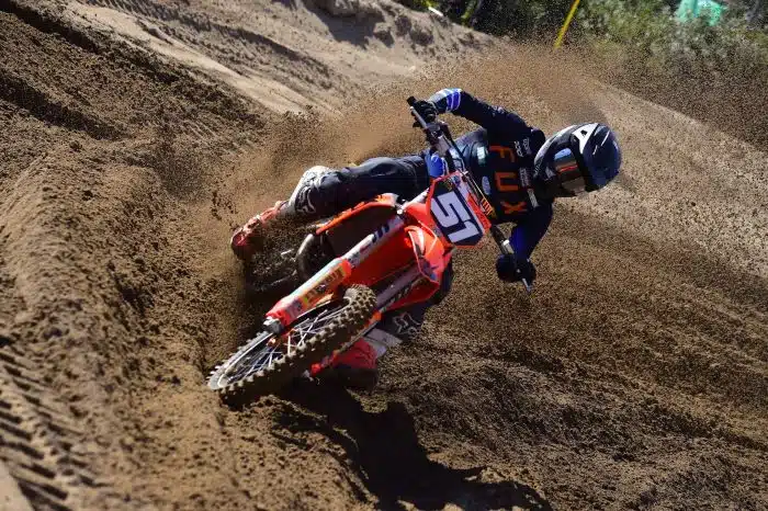 Paco Rico, entraîneur national : « Il est évident qu’il y a des situations que seuls les pilotes, les équipes et les entraîneurs connaissent. Le cas de Rubén Fernández est qu’il a souffert de problèmes après sa très lourde chute en Finlande qui l’a empêché de s’entraîner et, bien qu’il ait la vitesse, il n’avait pas le physique pour faire deux deux courses d’affilée comme l’exige la catégorie Open pour le MX of the Nations. C’est pourquoi nous avons discuté avec lui et Jorge (Prado) pour échanger les catégories en pensant au mieux pour l’équipe et en protégeant Fernández pour qu’il ait plus de temps de récupération entre les courses. Les pilotes sont très impliqués dans la réussite de l’équipe qui représente l’Espagne et n’ont pas hésité à se soutenir mutuellement.