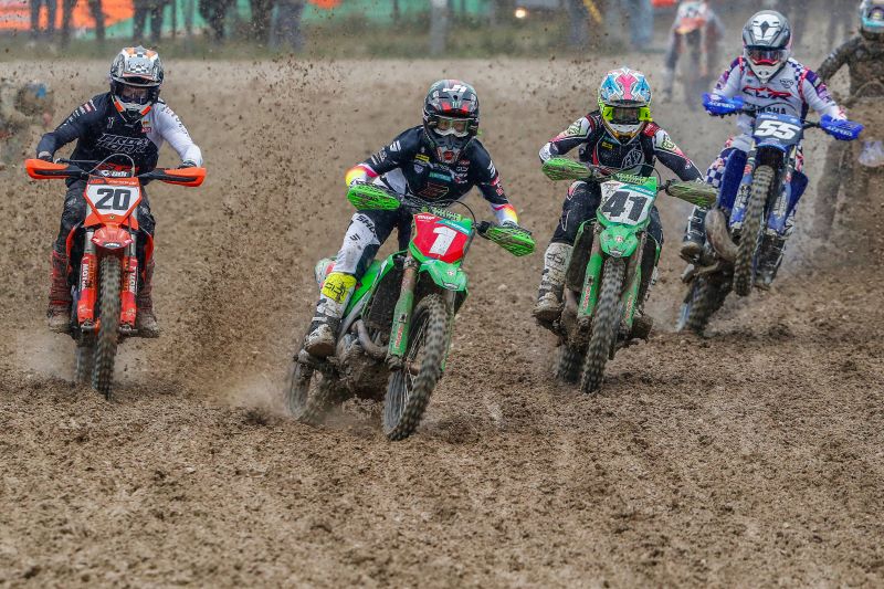 Avant cela, Romain Febvre avait pourtant pris une sérieuse option sur la victoire finale en s’imposant dans les deux premières manches. Dans la première, on a eu droit à un duel rapide avec Lucas Coenen, qui est finalement parti à la faute avant d’abandonner sur problème mécanique. Rebelote en seconde manche, où Romain Febvre a dominé à nouveau, s’imposant devant Maxime Renaux sur une piste déjà bien grasse. Après avoir tapé dans la grille puis avoir chuté en cours de remontée, Lucas Coenen est rentré au parc et a stoppé là sa journée. Sacha Coenen, lui, a abandonné en première manche après une chute et a décidé d’en rester là lui aussi.
