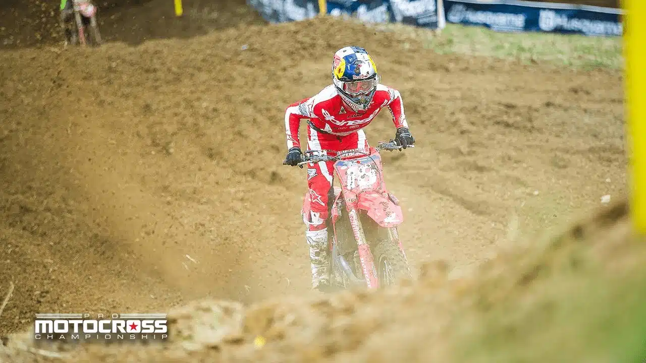 En 250, Hunter Lawrence a perdu son dauphin au championnat avant cette course d’High Point, puisque Justin Cooper a été transporté à l’hôpital après les essais pour passer des examens suite à une grosse chute. Mal parti en première manche, Hunter s’est retrouvé bloqué par une chute devant lui, comme Tom Vialle, est est reparti très attardé. Devant, RJ Hampshire est celui qui imprime le rythme devant Haiden Deegan, avant qu’RJ ne tombe seul. Le pilote Husqvarna va alors se lancer à la poursuite de Deegan pour aller le chercher en fin de manche ! Hunter a superbement sauvé les meubles en revenant sur le podium devant Jalek Swoll et Ryder Di Francesco. Tom Vialle arrache la onzième place à l’issue d’une belle remontée lui aussi.