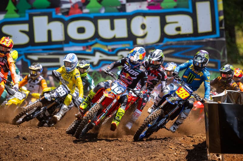En 450, difficile de parier contre Chase Sexton. Depuis le retrait de Jett Lawrence du championnat sur blessure avant RedBud, le pilote KTM a en effet remporté toutes les manches, sans avoir pris toujours les meilleurs départs. Avec une confiance au zénith et 28 points d’avance au provisoire sur Hunter Lawrence, le titre semble se profiler gentiment pour Chase, qui en est à trois victoires de suite et sept manches d’affilée remportées. Solide, le jeune américain pourrait donc s’offrir son premier titre Outdoor pour sa première année avec KTM, un an après son titre SX. Un palmarès qui commence à sérieusement s’étoffer… Restera ensuite à voir quel effet psychologique aura le retour de Jett Lawrence en SMX sur Chase Sexton.